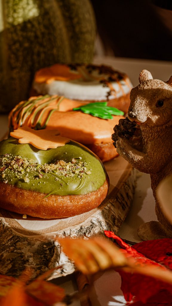 Producción colaborativa de fotografía gastronómica en Valencia, centrada en repostería artesanal con estética otoñal y gourmet.